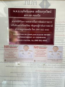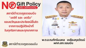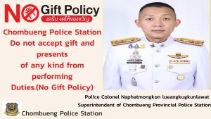 สถานีตำรวจภูธรจอมบึง ประกาศนโยบายต่อต้านการรับสินบน
