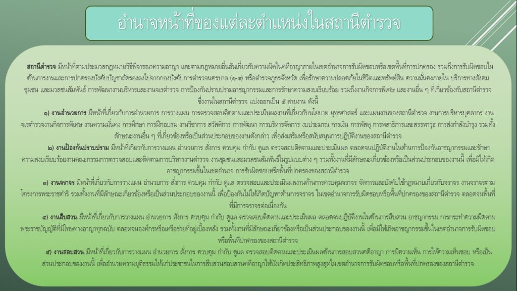 อำนวจหน้าที่ของแต่ละตำแหน่งในสถานีตำรวจ